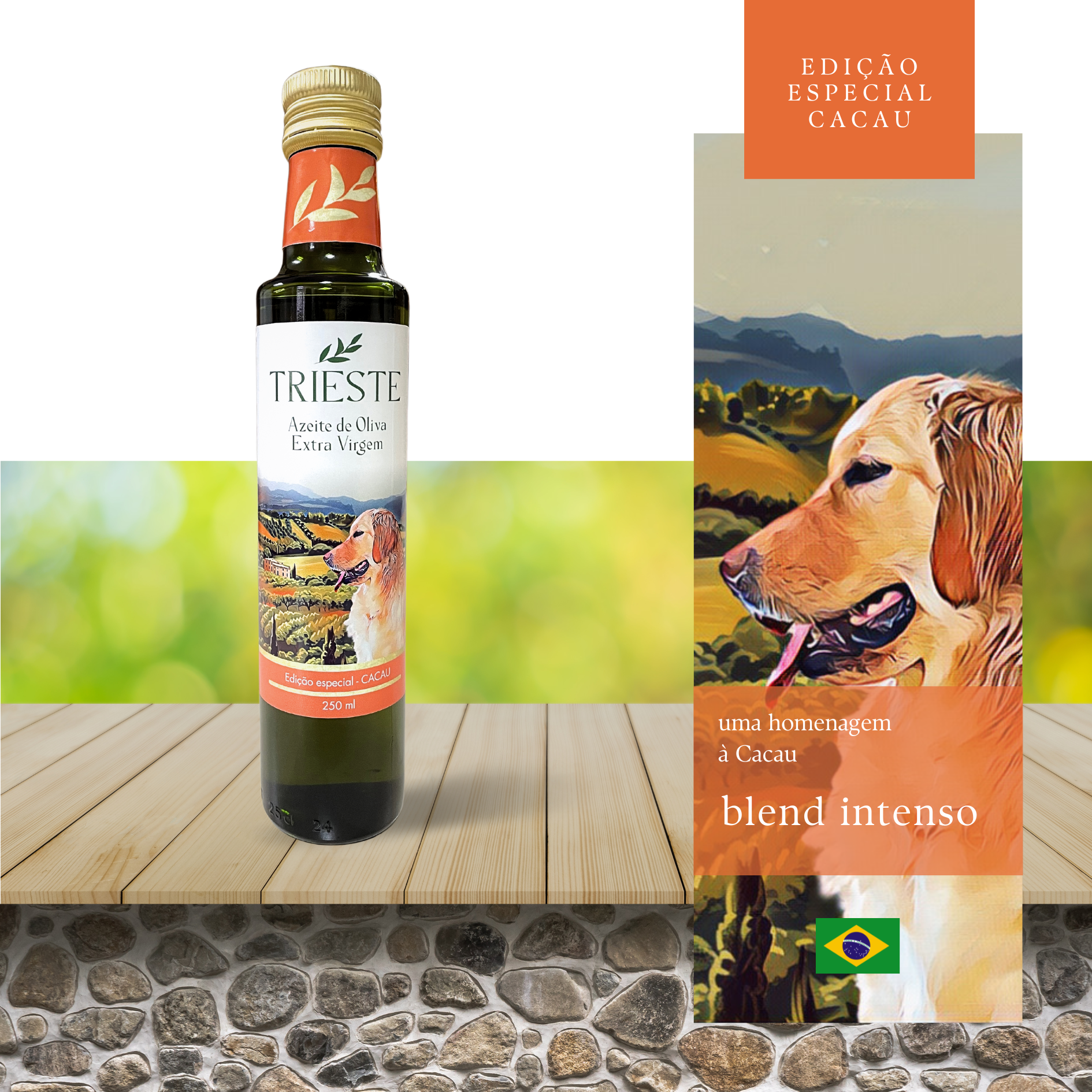 Conteúdo: caixa com 1 Unidade de Azeite Extra Virgem (250ml) Blend Especial - CACAU (blend intenso).