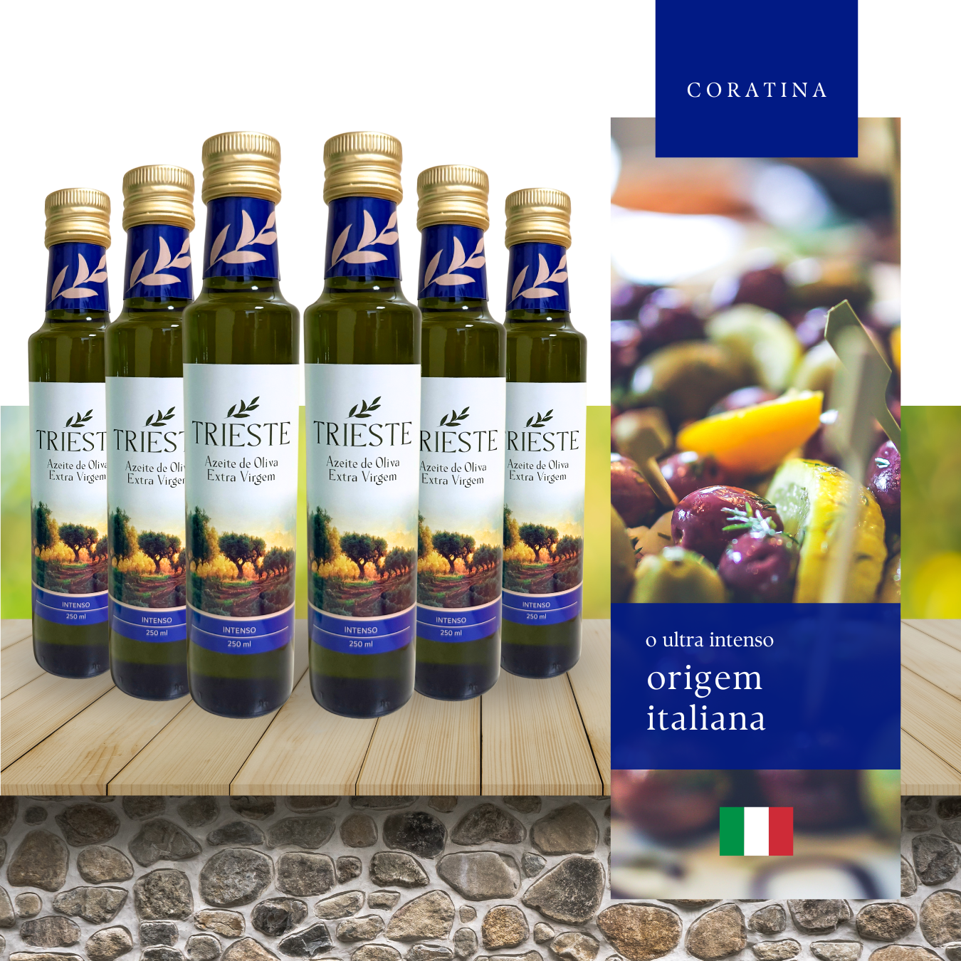 Conteúdo: caixa com 6 Unidades de Azeite Extra Virgem (250ml) Intenso - Coratina.