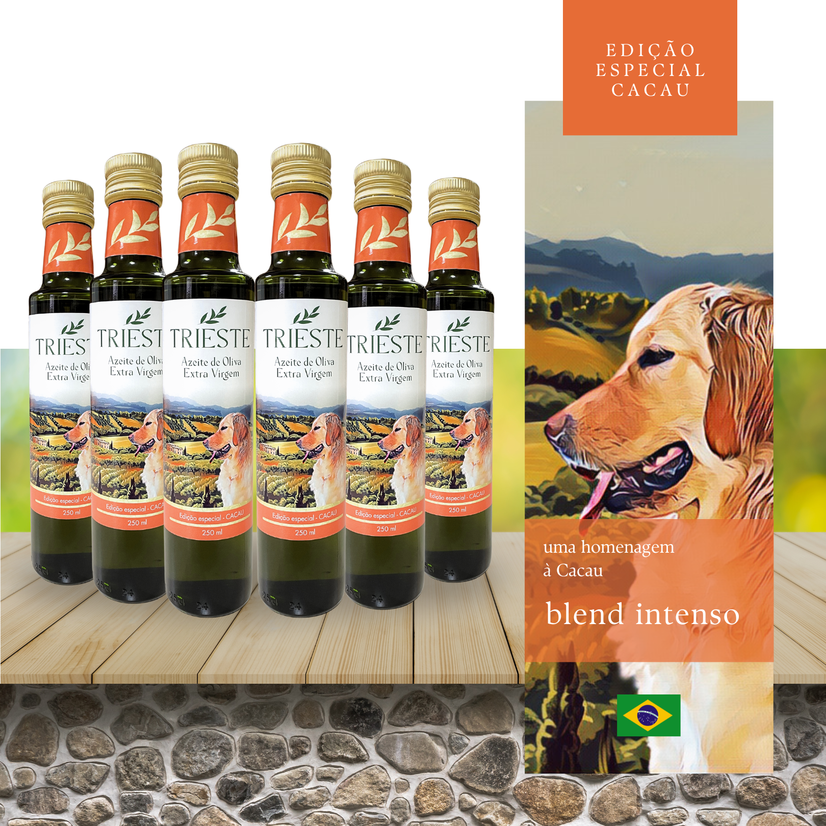 Conteúdo: caixa com 6 Unidades de Azeite Extra Virgem (250ml) Blend Especial - CACAU (blend intenso).